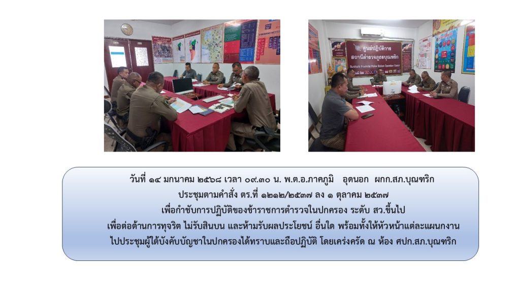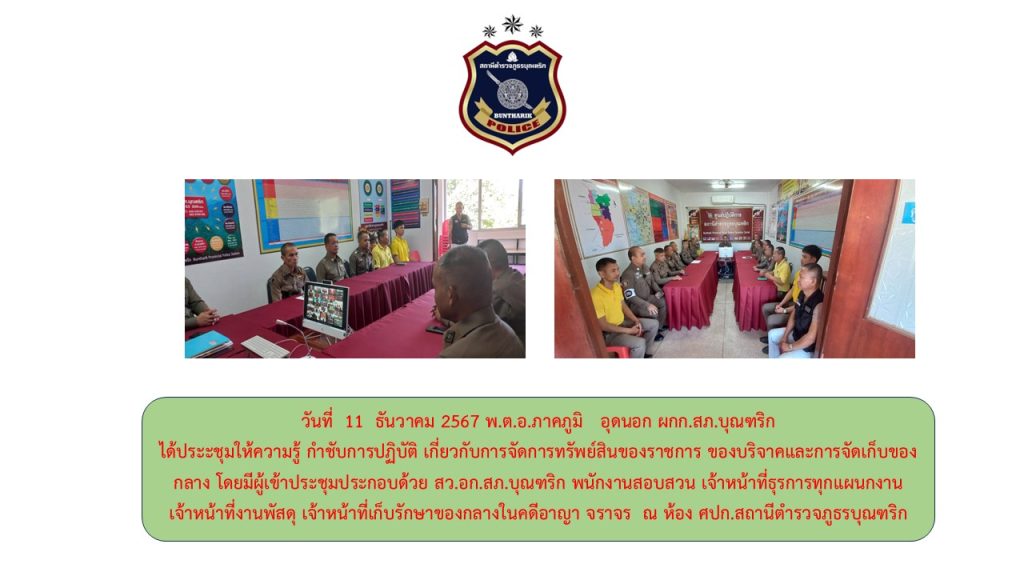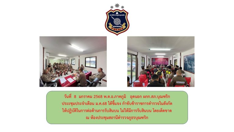 วันที่ 13 มีนาคม 2568 เวลา 11.00 น. พ.ต.อ.ภาคภูมิ อุดนอก ประชุมประจำเดือน มี.ค.2568 เพื่อชี้แจงข้อ